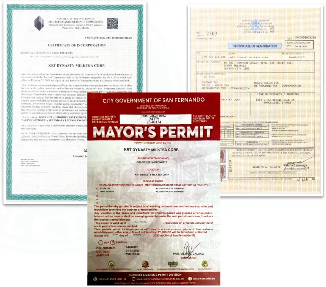 DTI, Brgy Permit (Hawkers/Ambulant Permit), Mayors Permit. Madalas, Brgy Permit okey na. Treated tayo gaya ng mga street vendor (Fishball vendor, magbubuko, tusok tusok)