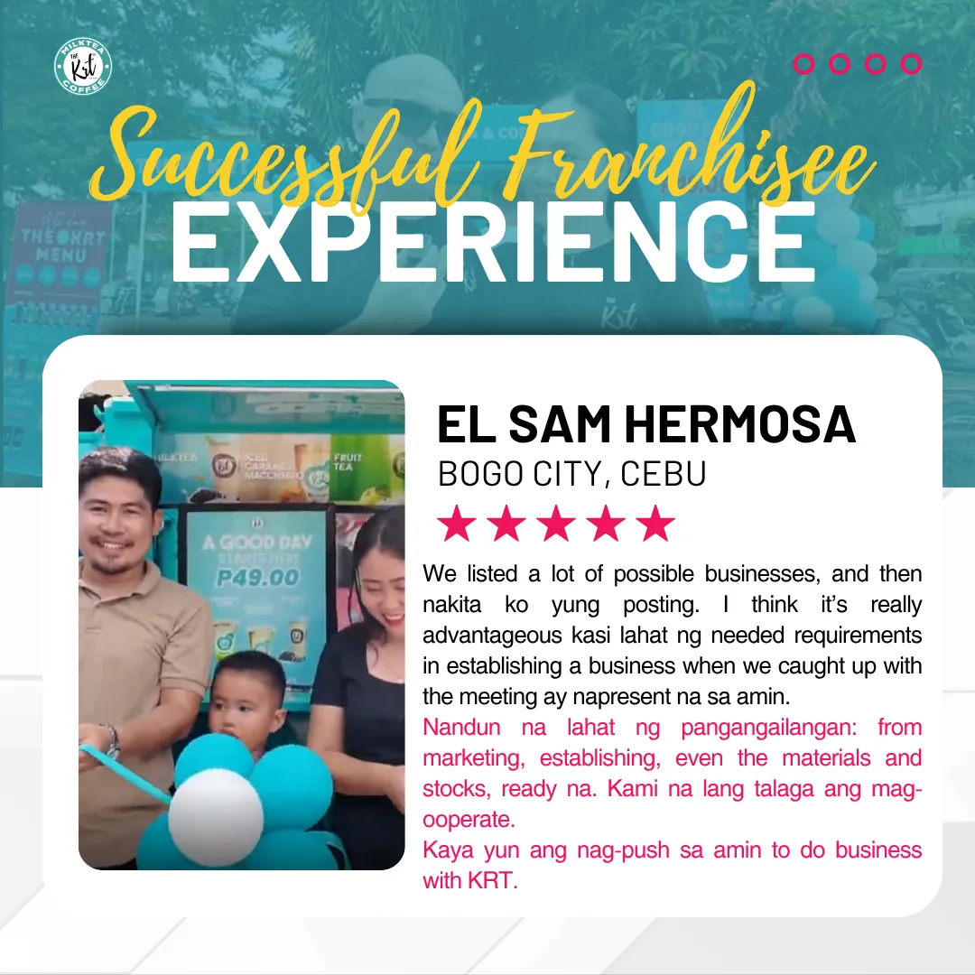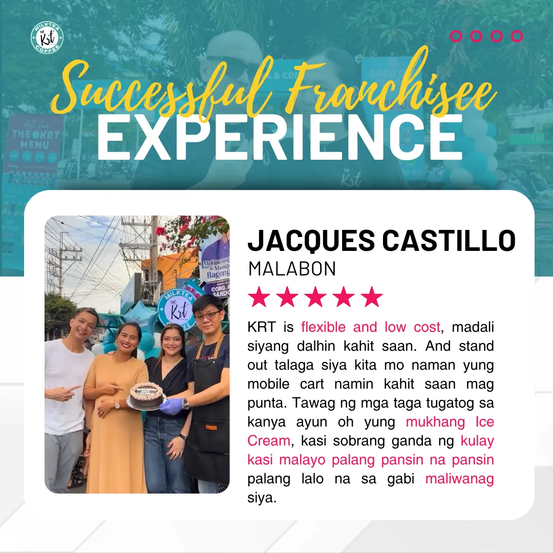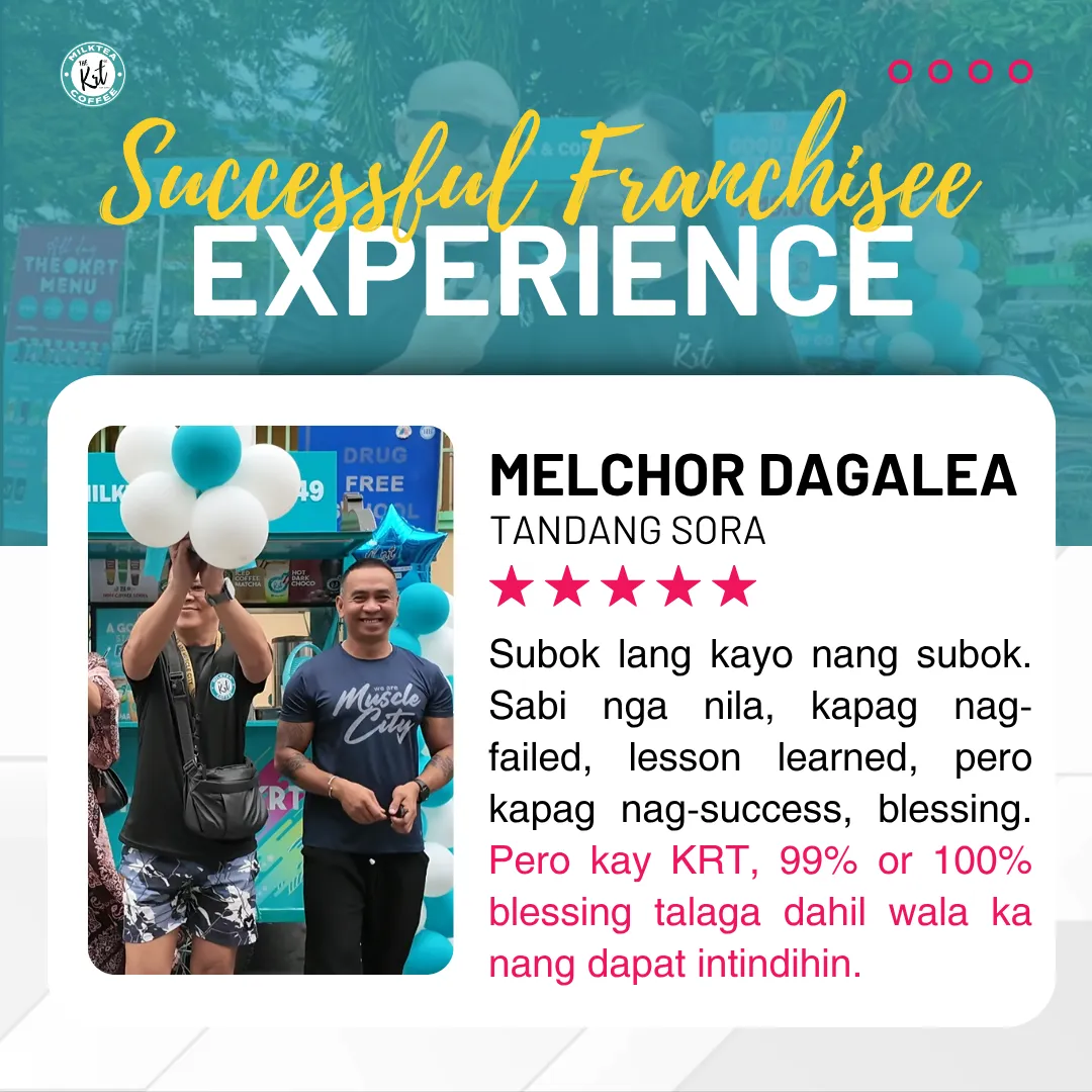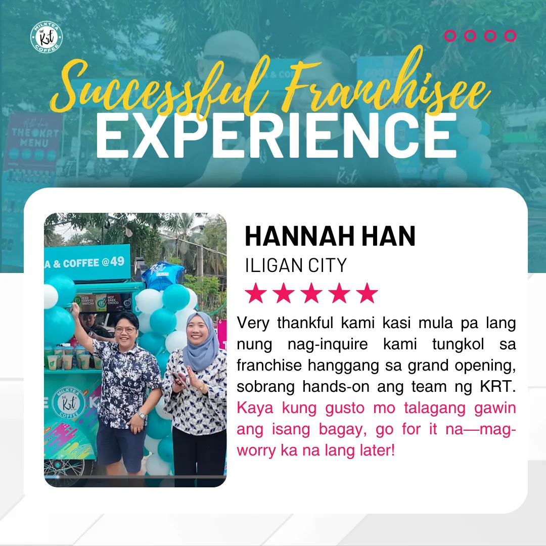 Depende sa performance mo. If you achieve our overperform scenario, 2months bawi na ang puhunan mo. If conservative side hustle scenario, 14months for ROI. Average sa franchisees namin is 6 to 8 months.